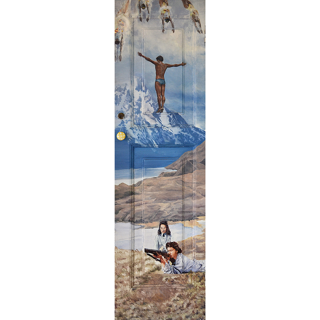 Buena puntería. Óleo sobre postigo de madera, 150 x 43 CM.