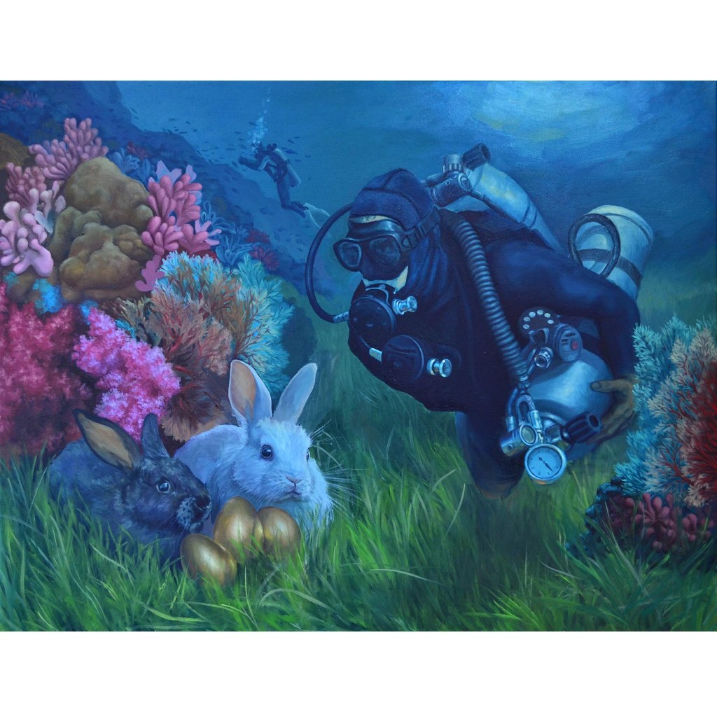Conejos de Agua. Óleo sobre tela, 90 x70 CM