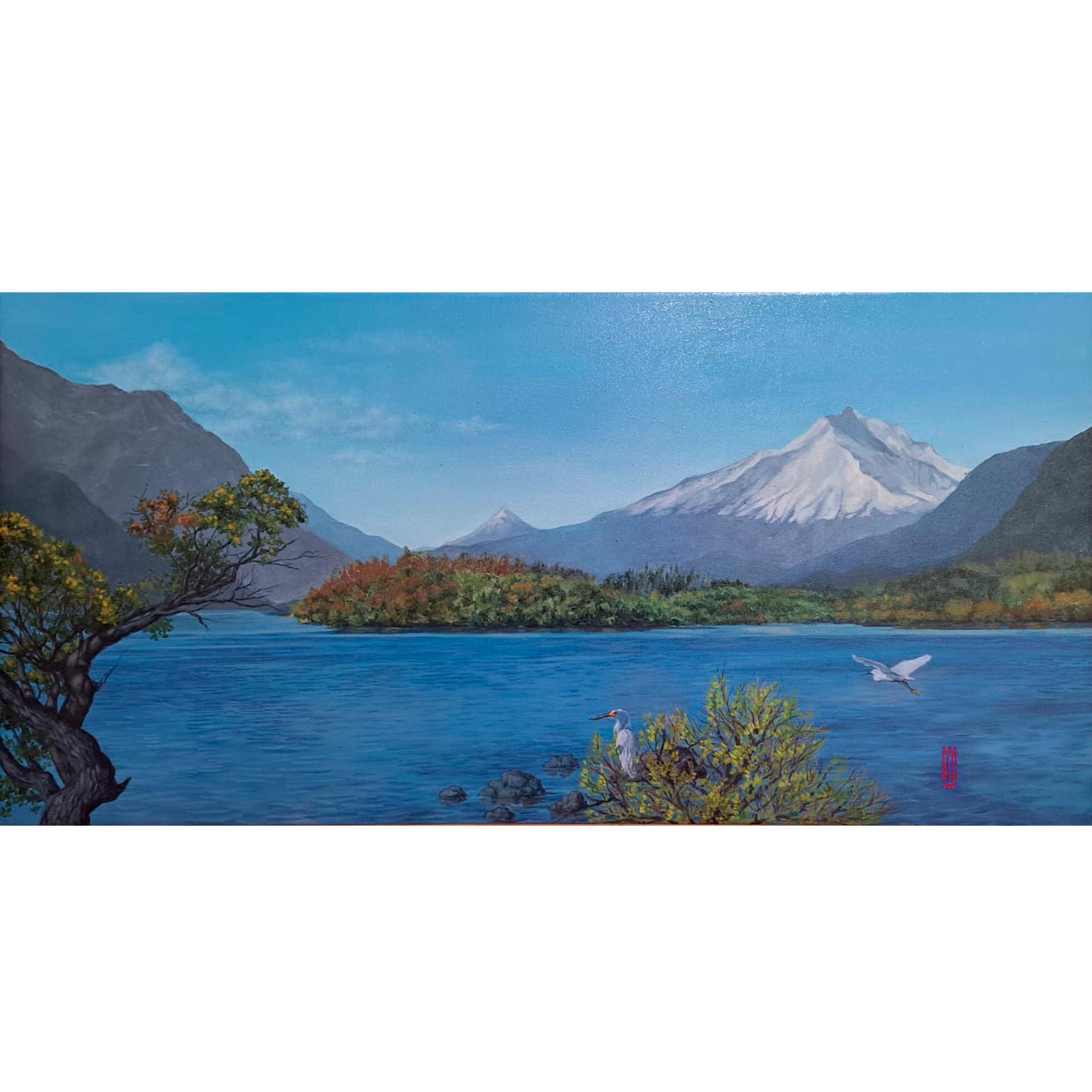 Lago Panguipulli. Óleo sobre Tela 80×40 CM