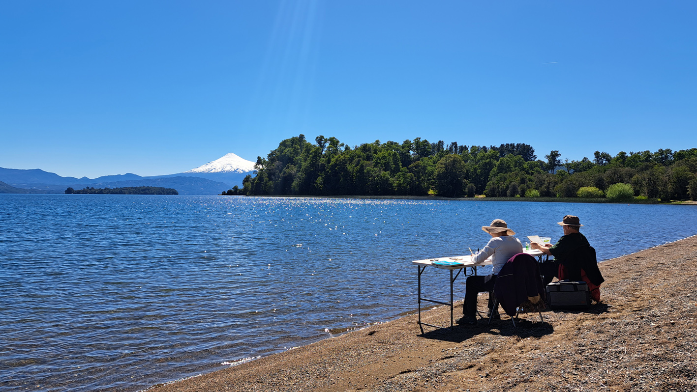 El eje central de la actividad es un taller intensivo de pintura de naturaleza al Aire Libre y en Estudio, con una duración de 5 horas al día aproximadamente (15 horas en total). La dinámica principal del taller contará con excursiones al aire libre, realización de bocetos de naturaleza y paisaje, descripción botánica de la principal vegetación endémica, recolección de muestras vegetales y fotografías del entorno natural. El trabajo continuará en el Estudio, donde profundizaremos en torno a las formas y paletas de colores de la vegetación y el paisaje, poniendo énfasis en la flora Nativa del sur de Chile. Se trabajará con distintos materiales, como la acuarela, carboncillo, acrílico y óleo. La Residencia y el Estudio están ubicadas en Quetroco, Lican Ray. Y las incursiones al Aire Libre se realizarán, dependiendo de las condiciones climáticas, a las orillas del lago Calafquén, con vista de altura en el cerro Chihuaico y/o Bosques de Quetroco, Lican Ray.