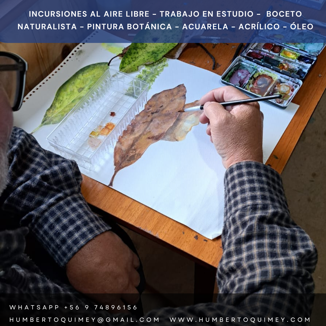 Las clases son impartidas por Humberto Quimey, Artista Visual formado en La Universidad de Chile, cuya obra desarrolla la Pintura del Paisaje, la Naturaleza y su dimensión simbólica ,explorando el contacto directo con el Paisaje en diversos escenarios naturales.